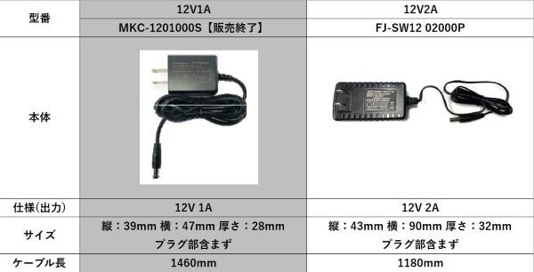 12V1Aモデルは終売となり、今後は12V2A(品番:FJ-SW12 02000P)をご検討くださいます様、お願い致します。